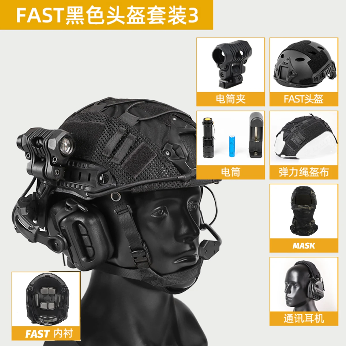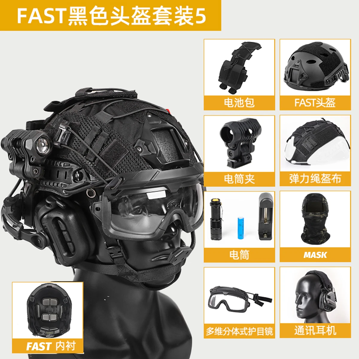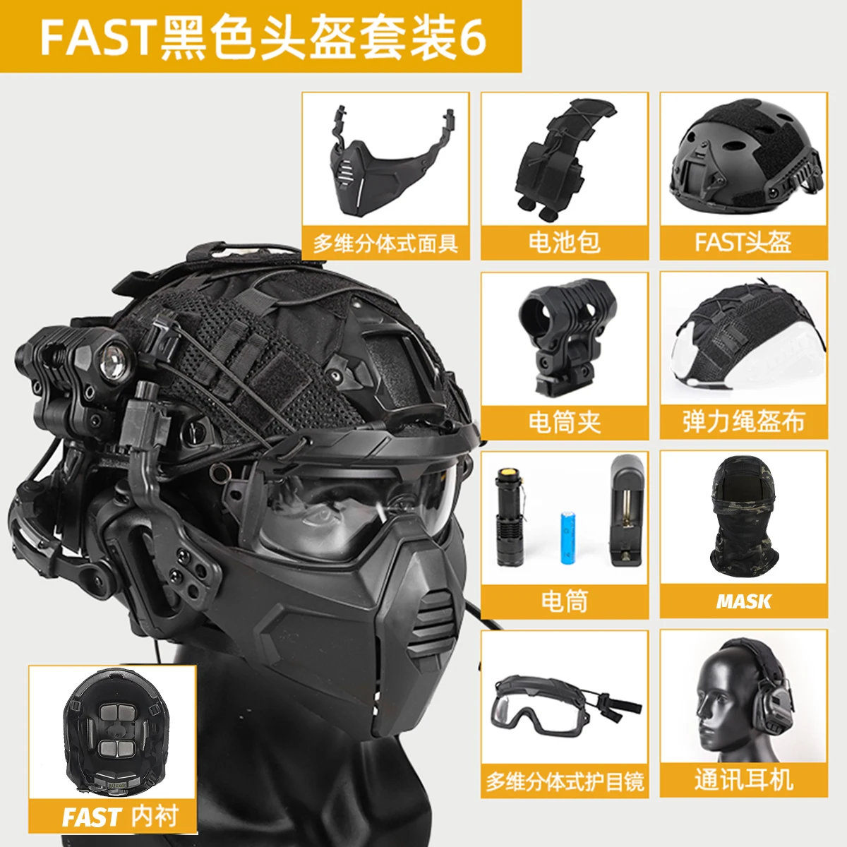 The FAST Airsoft Helmet Set is the ultimate gear package for the serious airsoft or paintball player. This comprehensive kit provides full head and face protection while integrating a suite of high-tech accessories designed to give you a strategic advantage on the field. From advanced audio communication to hands-free lighting, this helmet transforms your gear into a fully modular and highly effective tactical system.